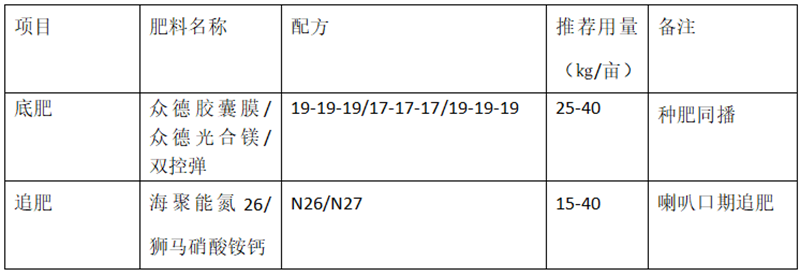 (2)推薦施肥套餐(根據(jù)用肥次數(shù)分類,結(jié)合目標(biāo)產(chǎn)量、地域、品種、地力等適當(dāng)調(diào)整)