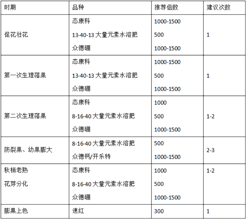 推薦方案:2%芐氨基嘌呤600倍+20%赤霉酸30000倍+眾德硼1500倍+8-16-40葉面肥500倍葉面噴施1-2次,配合抹夏梢或殺梢藥等農(nóng)事操作一并進行。